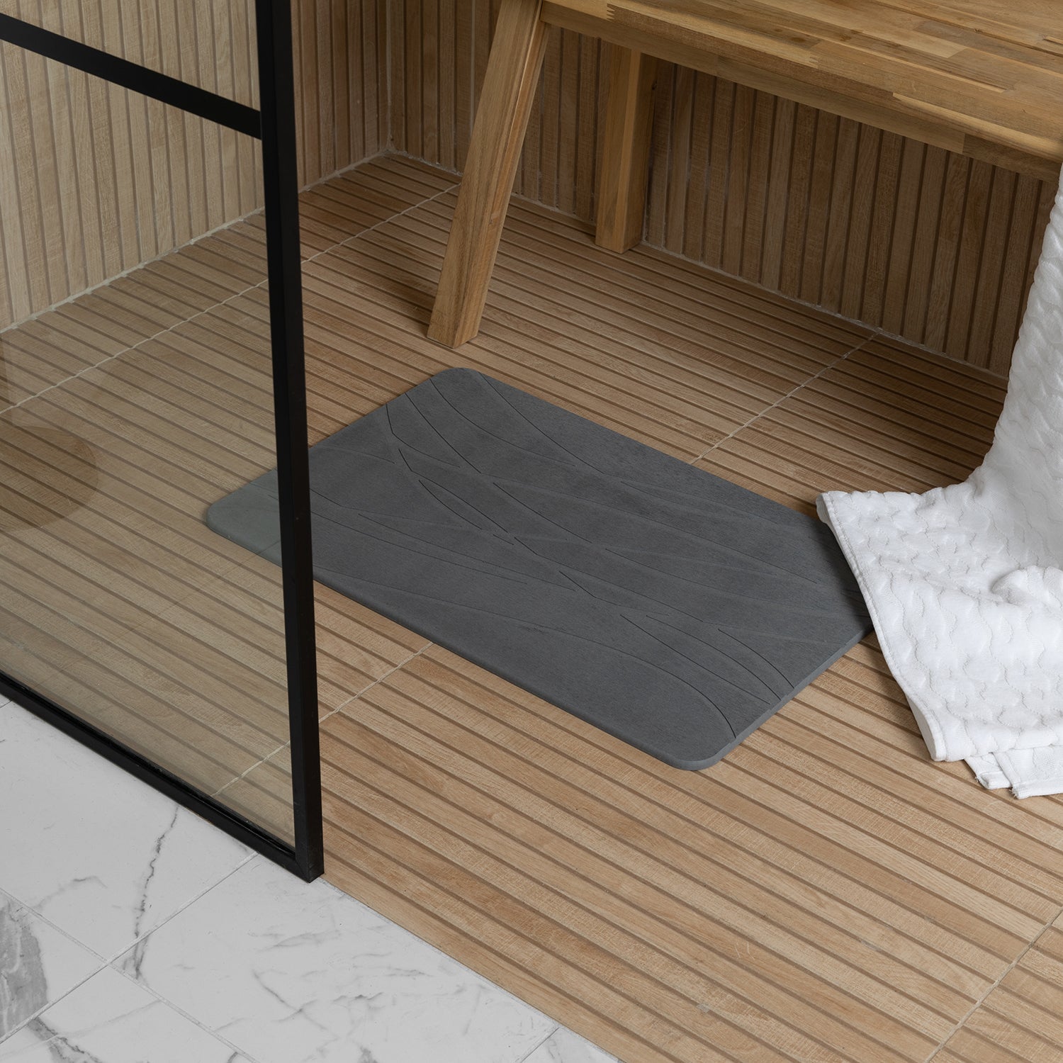 Diatomaceous Earth Stone Bath Mat - Graphite Grey